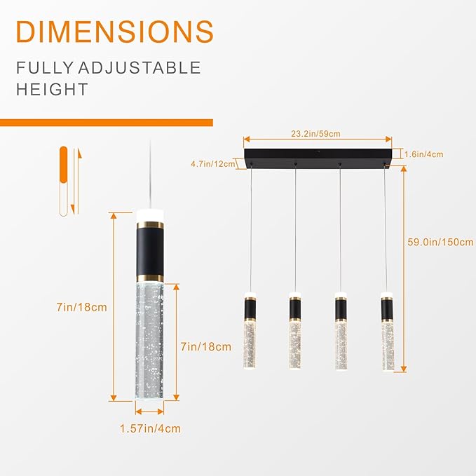 - Height Adjustable LED Pendant Light Fixture Hanging:Modern led pendant lights fixtures is with impeccable workmanship and easy assembly,Pendant Light Chassis: 23.2 inchesx4.7 inches; adjustable cord length: 0-59 inches. kitchen light fixtures perfect for dining room, living room, kitchen island, or as a kitchen sink light etc