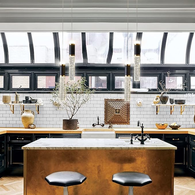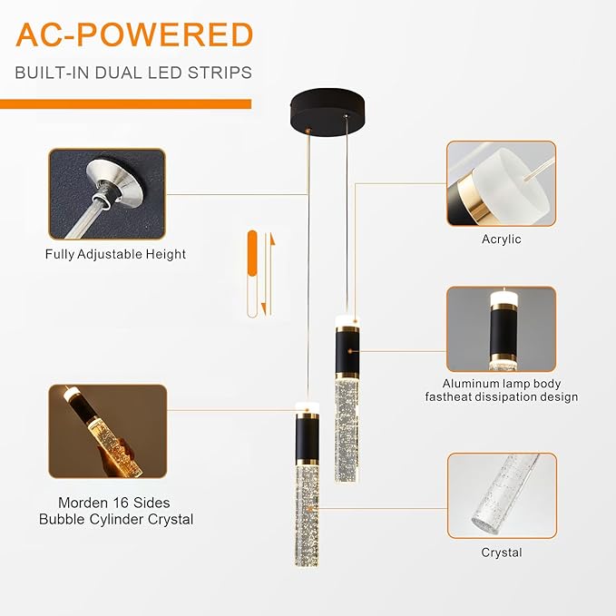 - Led Pendant Light,Crystal Modern Led Kitchen Island Light Fixture,Adjustable Pendant Lighting for Kitchen Island,Black Gold Led Chandelier for Dining Room,Bedroom,Mini Pendant Spot Lights (2-Light))