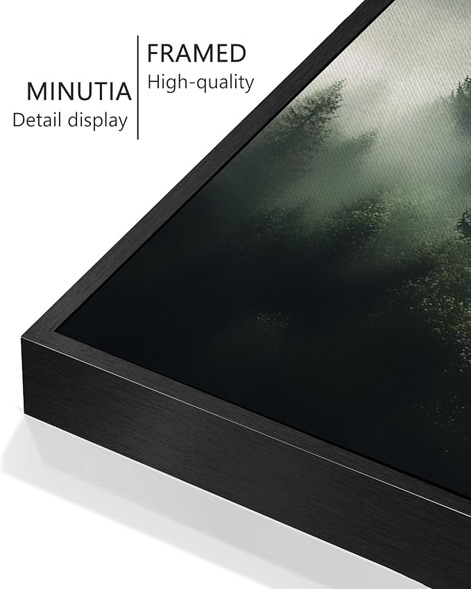 KUVIOKE Green Fog Pine Tree Framed Wall Art Nature Nordic Forests Artwork Morden Painting Home Decor 11x14in (Black Framed)