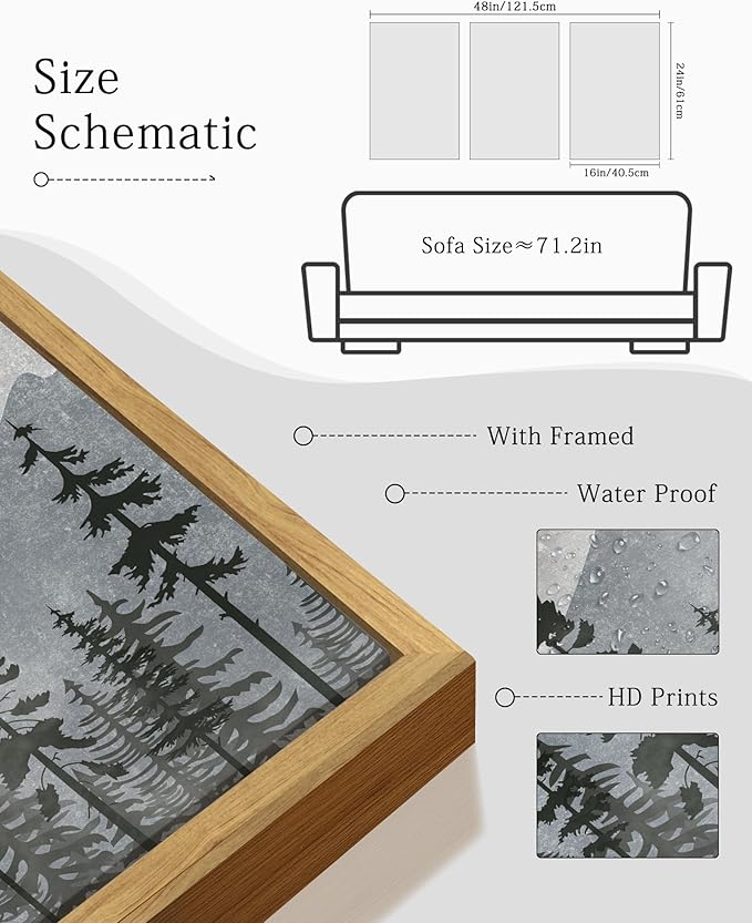 - Sturdy Frame & Easy Installation - Each 16x24 inch mountain frame artwork has a direct hanging groove on the back and is equipped with traceless nails, ready to hang.