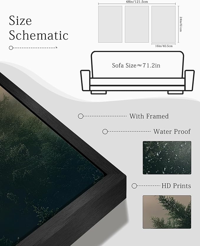 - Sturdy Frame & Easy Installation - Each 16x24 inch mountain frame artwork has a direct hanging groove on the back and is equipped with traceless nails, ready to hang.
