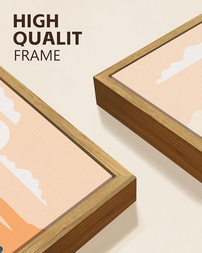 KUVIOKE Watercolor Landscape Framed Wall Art Nature Mountain Painting Sun Rises Boho Farmhouse Rustic Home Decor 12x16in (Natural Framed)
