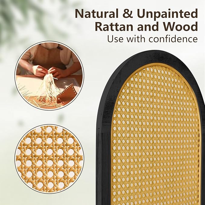 - Vintage Arch Design: The rattan room divider combines classic European vintage style with modern home aesthetics, especially for those who are looking for a unique decorative style. The upper part of the room screen is designed in a beautiful European vaulted shape, which not only adds an artistic touch to the space, but also brings a strong historical flavor to your home environment.