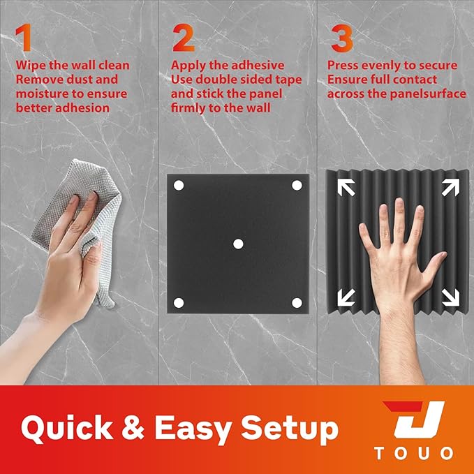 - ★【UPGRADED ACCESSORIES】:Includes 60pcs strong double-sided adhesive tape, ensuring secure installation without wall damage. Unlike traditional adhesives that tear paint or leave residue, our high-quality adhesive allows easy mounting of soundproofing panels for walls while ensuring residue-free removal. These soundproof foam panels are perfect for homes, offices, studios, dormitories, rental properties, and commercial spaces. Whether for temporary or permanent setups, installation is hassle-free.