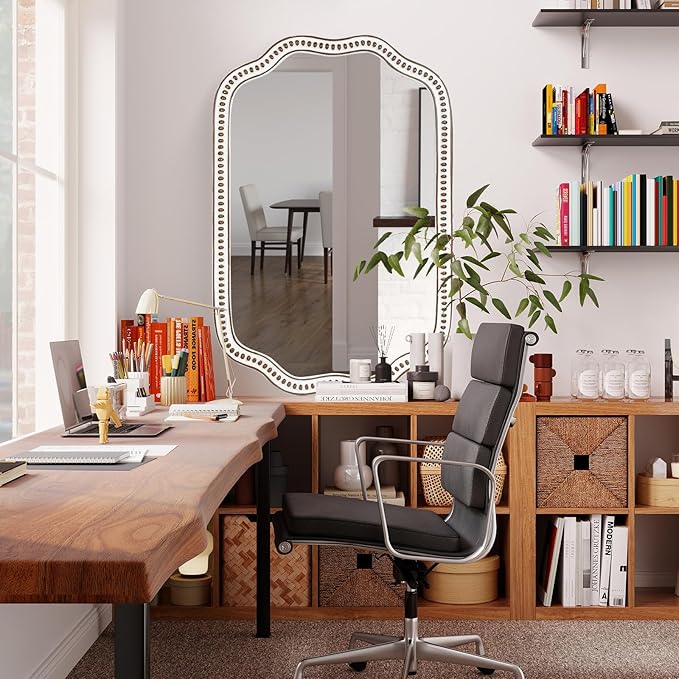 - High-Quality Wooden Craftsmanship: Crafted from durable solid wood, this wooden mirror for wall combines longevity and aesthetics. The classic scalloped silhouette adds character to boho wall mirror decor styles and fits seamlessly into both modern and traditional interiors
