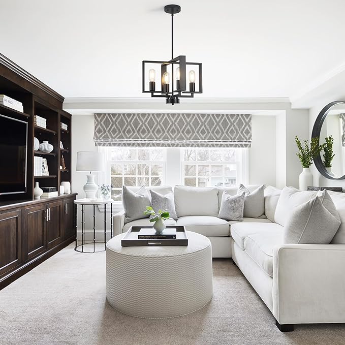 - đăPremium Matte FinishăCrafted with a high-quality metal frame featuring durable black spray paint that resists rust, fading, and aging for long-lasting beauty. The black chandelier 4 light design delivers brighter yet softer illumination, enhancing your dining space's ambiance. Seamlessly complements various home dĂŠcors from modern to farmhouse, ideal for dining rooms, entryways, or living areas.