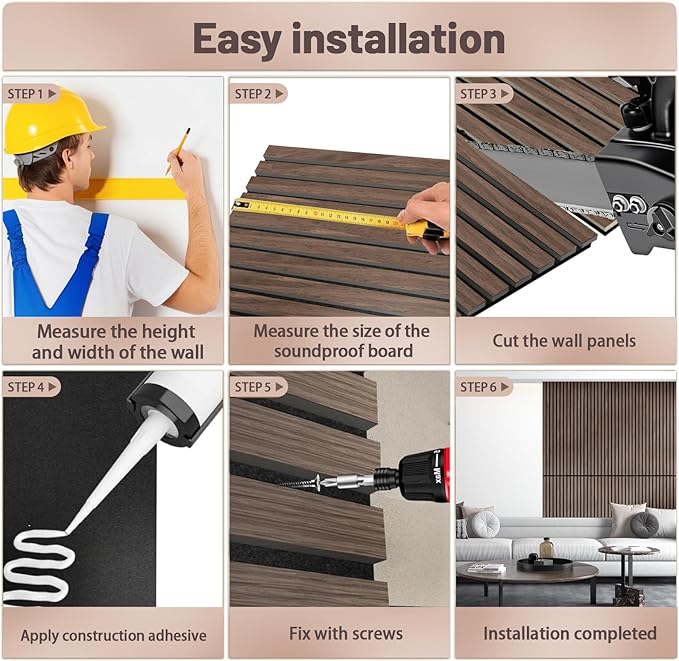 - EASY INSTALLATION: Installing these acoustic panels is child's play - either with screws or glue (not included). If they need to be adapted to a specific room size, they can be easily DIY'd to the right size with just a saw, making them flexible enough to correspond to different decorating needs.