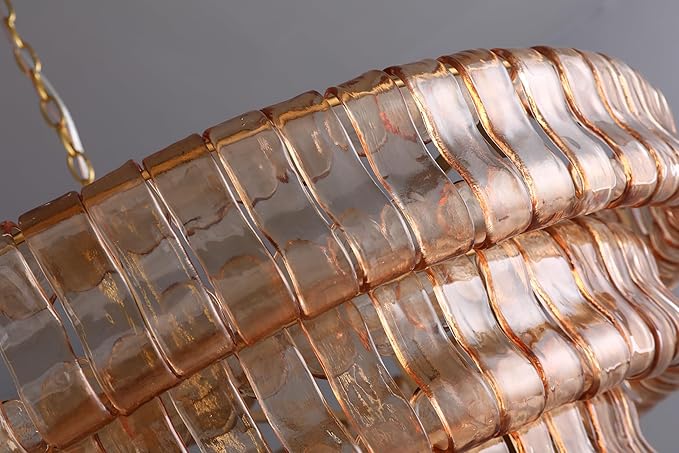 - 【Gold Chandelier】The golden round chandelier in the restaurant adopts a unique amber glass design. The modern chandelier shade is made of layered glass, all amber glass polyhedrons are suspended on a metal frame circle, combining with the room decoration to create an elegant and luxurious atmosphere.