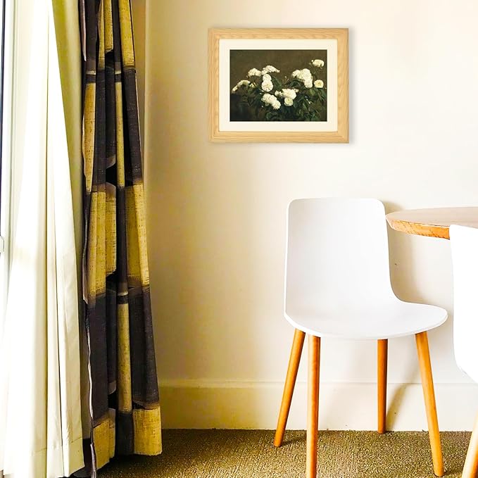 - Faux Wood Frame with Oakgrain Finish: The PS frame mimics natural oak with a matte embossed texture. Combined with the mat, it offers a timeless frame for romantic floral prints and vintage-inspired still life scenes.