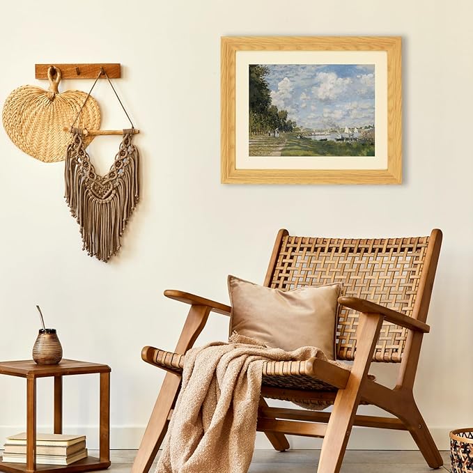 - Faux Wood Frame with Oakgrain Texture: Crafted from durable PS with embossed oakgrain, the light wood frame and mat create a refined, natural look—suited for cottage, classic, or transitional decor styles.
