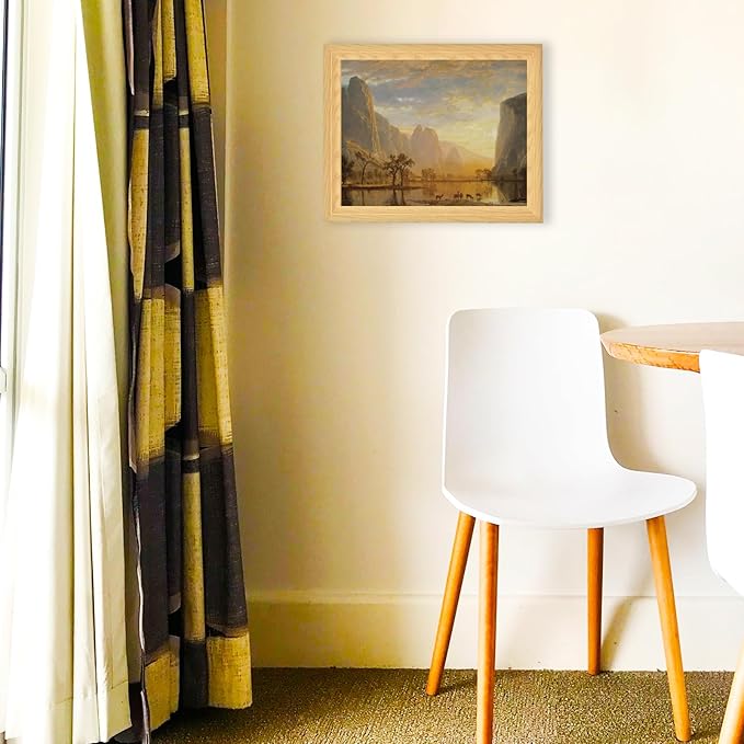 Brivoria Framed Canvas Wall Art Vintage Decor, Majestic Autumn Valley Landscape with Golden Cliffs, Sunset Sky, Reflective Lake and Deer Herd for Dining Room Hallway Office or Nature Display, 13"x16"