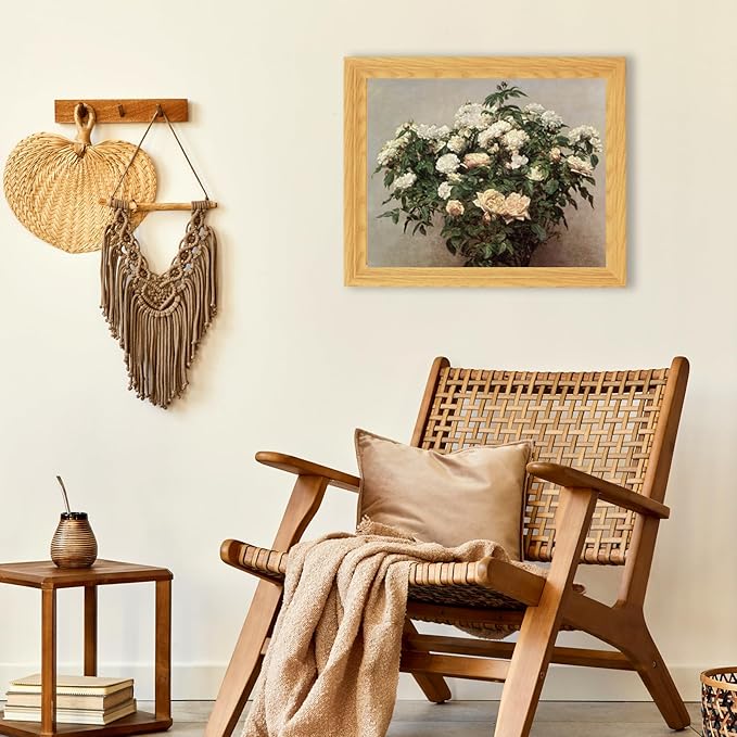 - Romantic Rose Tree by Fantin-Latour: This framed canvas print features Henri Fantin-Latour’s “Rose Trees”—a detailed realism floral composition with white and blush roses, ideal for classic, botanical, or Victorian-style interiors.