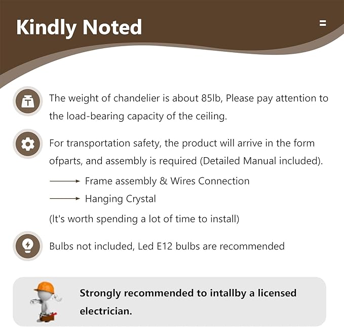 - 【Compatible 25*E12 Bulb】:This large crystal chandeliers requires 25 x E12 bulbs(Bulbs are not included) Max 60W. Compatible with many kind bulbs: dimmable bulbs, energy saving bulbs, Led bulb,halogen bulbs etc