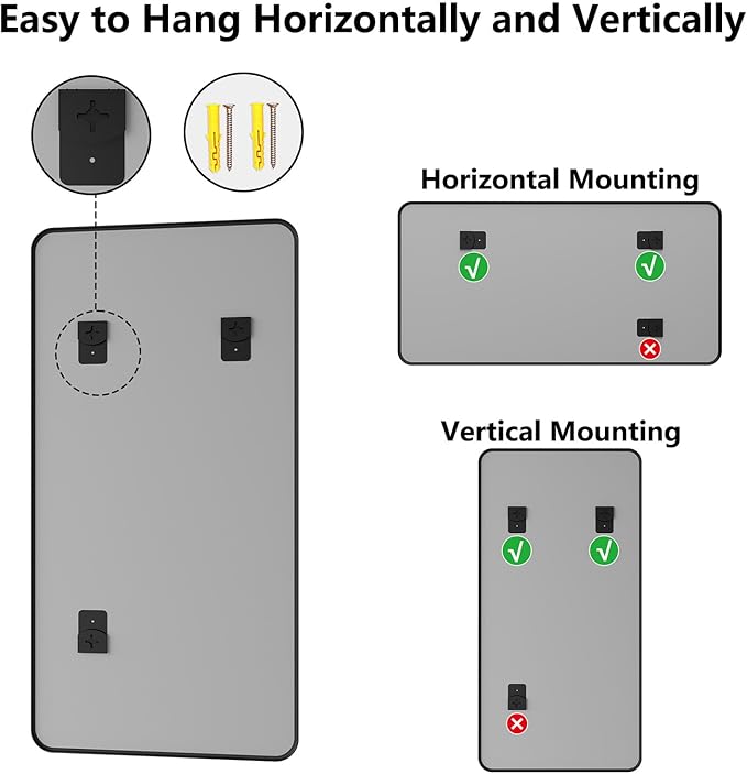 - No-Fuss Installation – Ready in Minutes: Comes with all hooks/hardware for vertical or horizontal hanging—no extra tools needed. Install this bathroom sink mirror before your coffee gets cold! Perfect for renters, DIYers, or anyone who hates complicated setups. Transform your space in minutes, whether above the sink, in the entry, or living room.