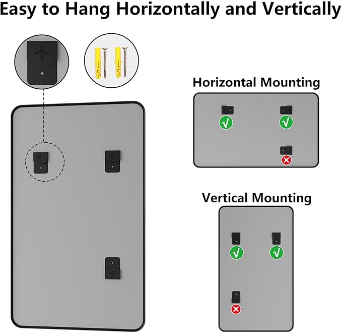 - No-Fuss Installation – Ready in Minutes: Comes with all hooks/hardware for vertical or horizontal hanging—no extra tools needed. Install this bathroom sink mirror before your coffee gets cold! Perfect for renters, DIYers, or anyone who hates complicated setups. Transform your space in minutes, whether above the sink, in the entry, or living room.