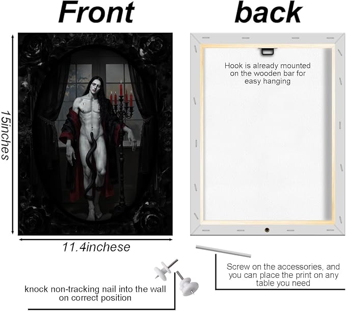 Male Portrait Wall Art, Medieval Vampire Poster Dark Academia Canvas Framed Prints Artwork for Walls, Vintage Gothic Prints for Living Room Entryway Bedroom Decor Aesthetic 15x11.4 inch