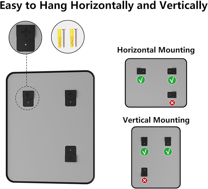- No-Fuss Installation – Ready in Minutes: Comes with all hooks/hardware for vertical or horizontal hanging—no extra tools needed. Install this bathroom sink mirror before your coffee gets cold! Perfect for renters, DIYers, or anyone who hates complicated setups. Transform your space in minutes, whether above the sink, in the entry, or living room.