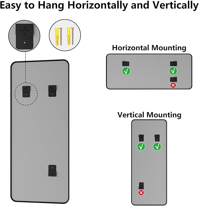 - No-Fuss Installation – Ready in Minutes: Comes with all hooks/hardware for vertical or horizontal hanging—no extra tools needed. Install this bathroom sink mirror before your coffee gets cold! Perfect for renters, DIYers, or anyone who hates complicated setups. Transform your space in minutes, whether above the sink, in the entry, or living room.