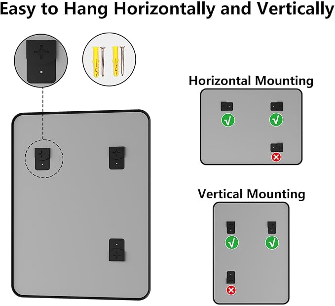 - No-Fuss Installation – Ready in Minutes: Comes with all hooks/hardware for vertical or horizontal hanging—no extra tools needed. Install this bathroom sink mirror before your coffee gets cold! Perfect for renters, DIYers, or anyone who hates complicated setups. Transform your space in minutes, whether above the sink, in the entry, or living room.