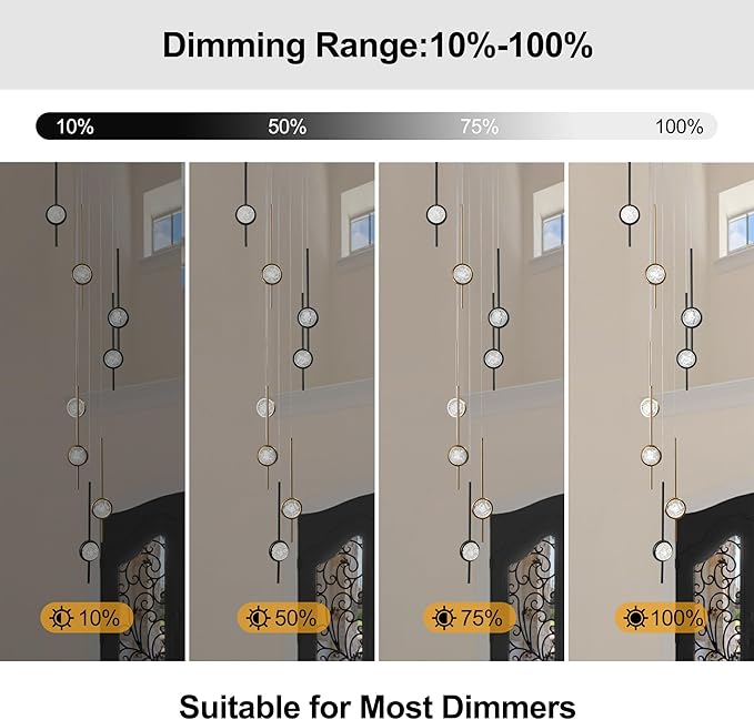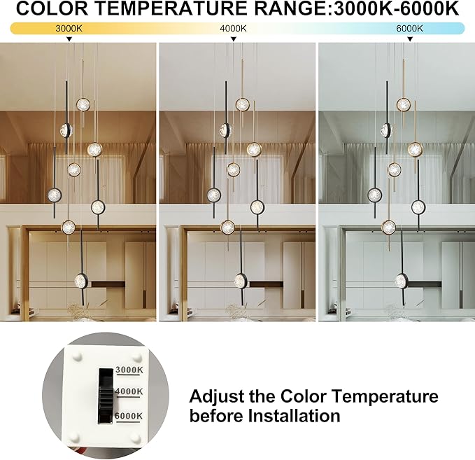 - 【Dimmable Eye-Protecting Lighting】Features premium dimmable LED bulbs. Adjust brightness (10%-100%) via a switch (not included). Before installation, use the color temperature dial to select from warm white (3000K) for relaxation, neutral white (4000K) for balanced ambient light, or cool daylight (6000K) for task-focused clarity. Delivering 2160 lumens at just 24W with a CRI 85+ and wide voltage compatibility (85V-265V), it ensures flicker-free illumination that is easy on the eyes and energy-efficient.
