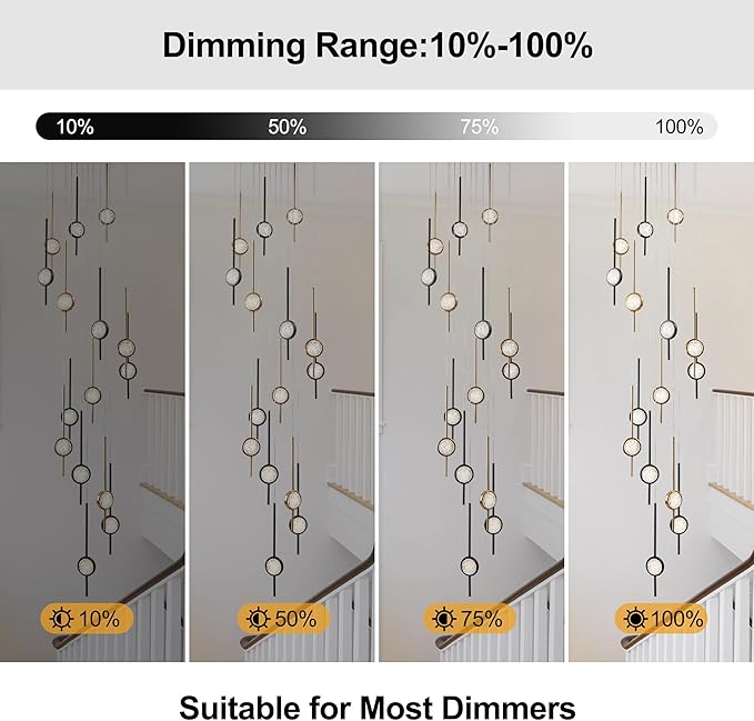 - 【Modern Staircase Chandelier】Exclusive special dimmable chandelier, adjustable color temperature of 3000/4000/6000K, 45W, 4050 lumens output, CRI85+, Applicable voltage: AC85-265V