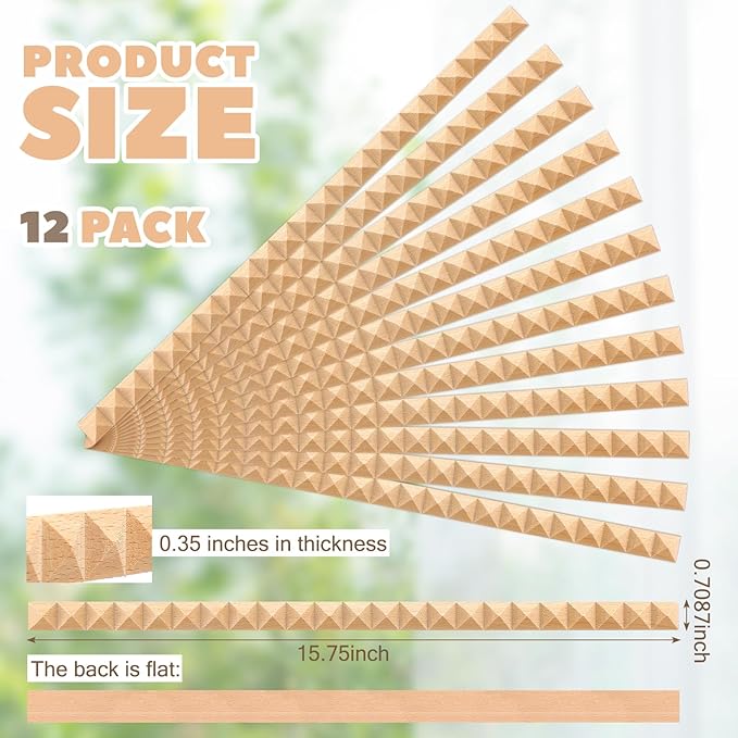 - Enough Quantity and Dimensions: the package includes 12 DIY wood trims, each with a measurement of 0.71 inches in width, 15.75 inches in length and 0.2 inches in thickness; The wooden trim is delicately designed to suit every cut according to different thoughts, ensuring a nice finishing touch