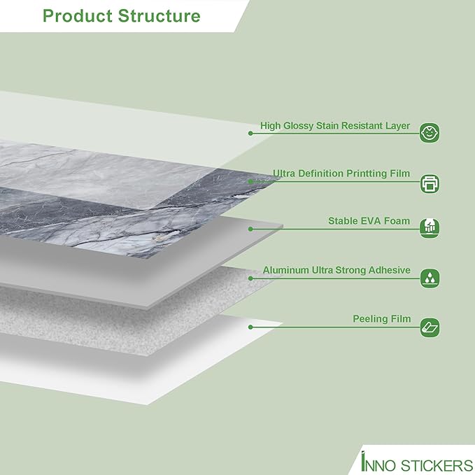 - Product Dimension - Comes with 1 roll well-packed vinyl wall panel with size of 118" L x 47" W, covering 38.75 sq.ft. Glossy finish with random marble patterns
