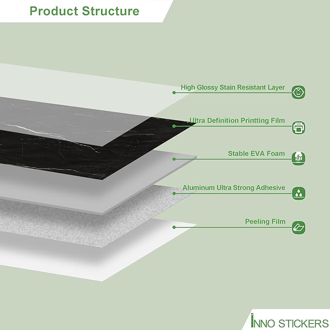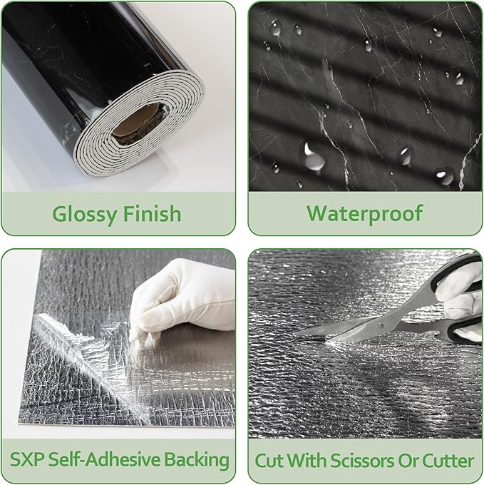 - Product Dimension - Comes with 1 roll well-packed vinyl wall panel with size of 118" L x 47" W, covering 38.75 sq.ft. Glossy finish with random marble patterns