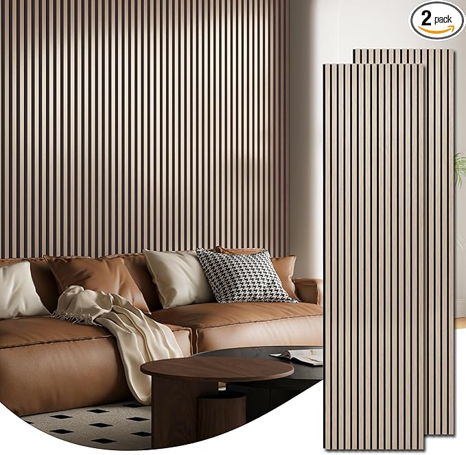 - 【Package Includes】- 2-pack acoustic wood slat wall panels, each measuring 94.5" x 24", covering approximately 31 sq.ft. Recommended to purchase a sample pack first to select the color and style for your project