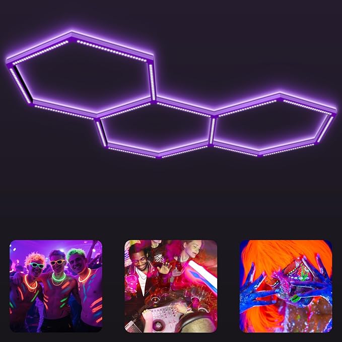 - Hexagon Design for Enhance Aesthetics - Industry-first honeycomb shape breaks the mold of boring black lights. Geometric modern styling instantly upgraded any space with sci-fi ambiance