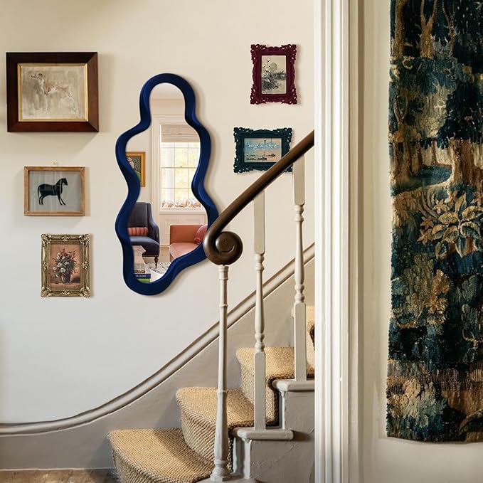 - Strong Package, Ready-to-hang Design: The asymmetrical mirror art is packed carefully to prevent shocks and damages during delivery. A sawtooth hanger was fixed on the back for instant use, easy and safe. Whether using it as a solo accent above console table or integrating it into a curated gallery wall, this squiggly mirror stands out and reflects your personality