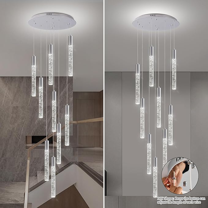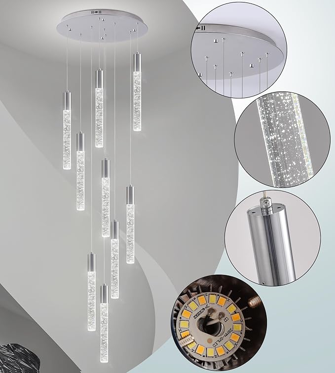 - MODERN CHANDELIER:The crystal chandelier is made of gorgeous K9 bubble crystal column and Premium aluminum lampshade.Built-in LED chips are replaceable, bright and energy-saving, soft light, creating an elegant and cozy atmosphere