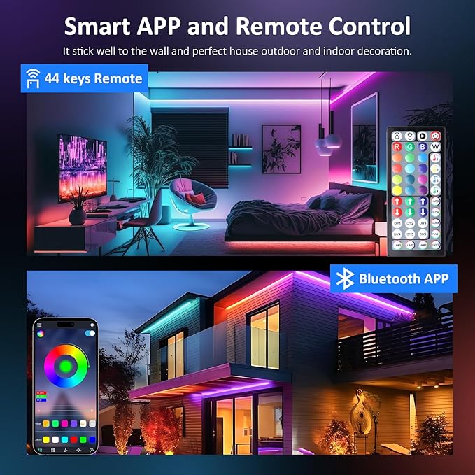 - 【Dual Control Mode】44-key infrared remote control and Lotus Lamp APP dual control mode. According to your own needs, you can set the color, brightness and timed on/off of the light strip more conveniently. Both the elderly and children can handle it easily