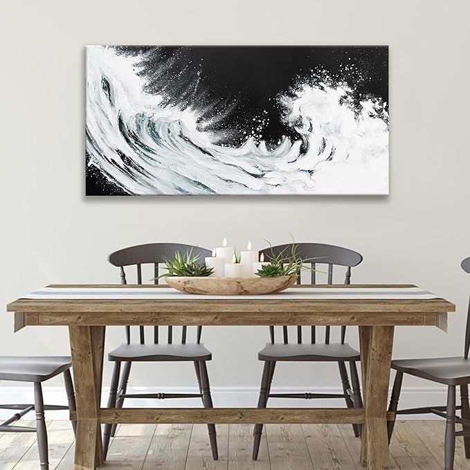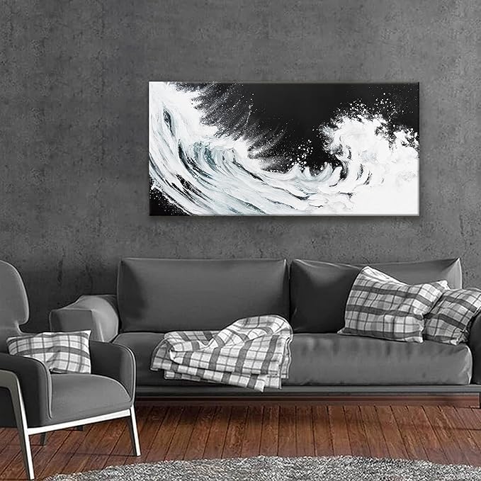 Black Abstract Wall Art Living Room Abstract Painting Wall Decor Modern 24"X 48" Canvas Art Wall Decor Black White Ocean Waves Wall Art Canvas Prints Artwork Pictures For Bedroom Kitchen Artwork
