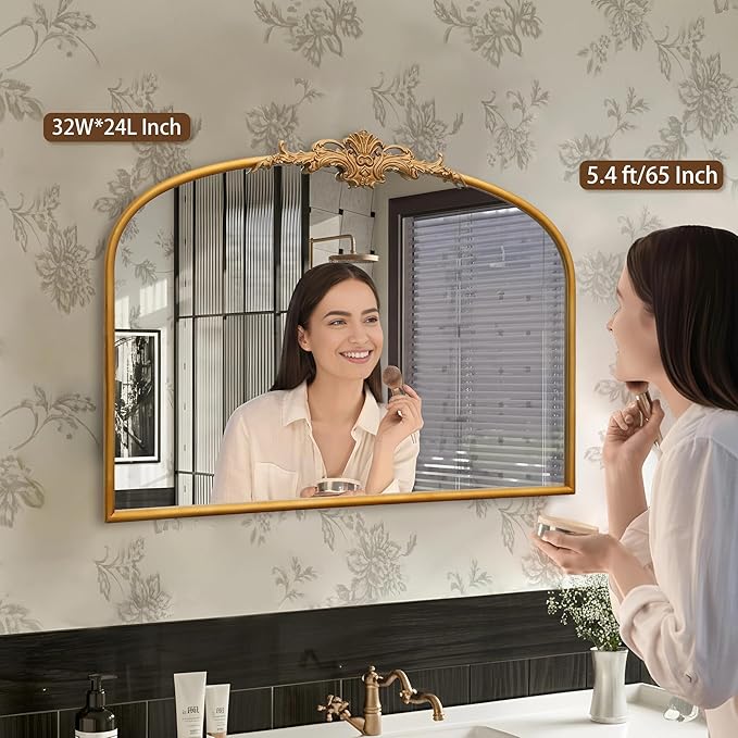 - Exquisite French Aesthetic:Our Baroque arched mirror is available in a variety of sizes and colors. Beyond fireplaces and entryways, this mirror enhances bathrooms, dressing rooms, corridors, and even dining areas. Its ornate design adds depth and luxury to any space, making it a favorite among homeowners and stylists alike.