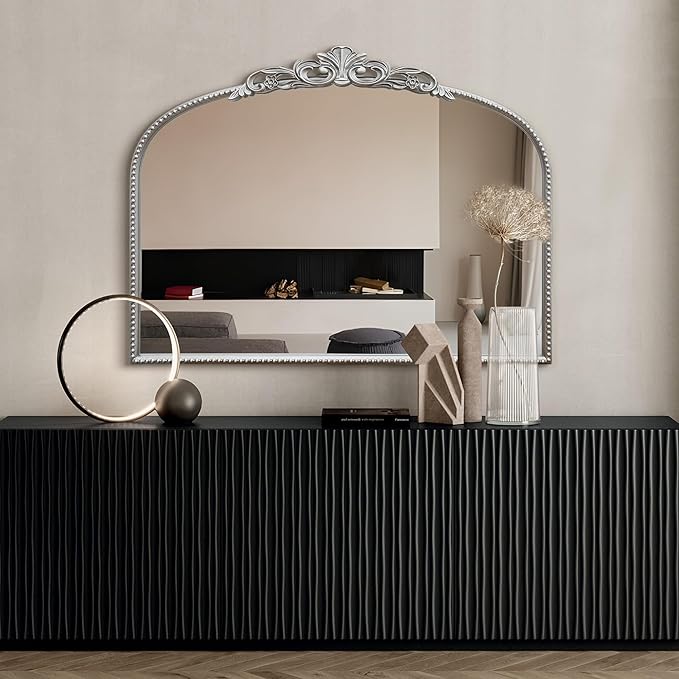 Micasso Vintage Wall Silver Mirror: 24" x 32" French Baroque Antique Mirror - Traditional Ornate Decorative Arched Mirrors for Wall/Bathroom/Entryway/Fireplace/Hallway - Home Decor for Living Room