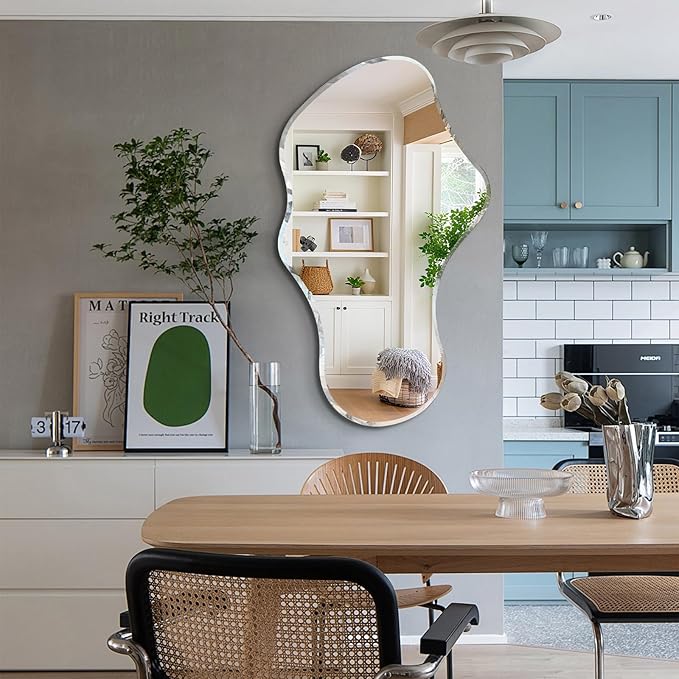 - 【Protected Package】Each asymmetrical mirror is meticulously packaged using thick, impact-resistant polystyrene foam and a reinforced cardboard box to prevent cracks, chips, or breakage during transit. Unbox a flawless piece of decor, ready to hang and enjoy.