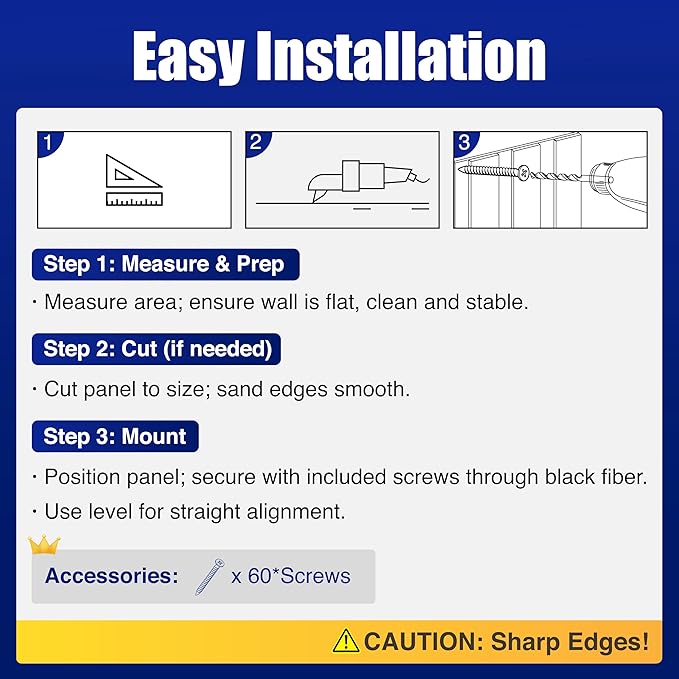 - âĄă Easy Installation & CoverageăEach set includes 4 panels (12.8" x 47.2") covering approximately 17 sq.ft. Install quickly with screws. Mount on walls or ceilings for immediate acoustic improvement with these wood slat panels.