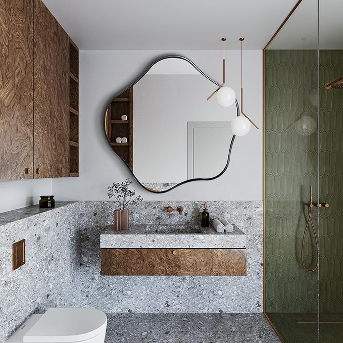Large Scalloped Mirror, 35" Irregular Shaped Mirror, Asymmetrical Wall Mirrors Decorative, Modern Wavy Round Mirrors for Living Room Bathroom Bedroom Hallway Entryway Fireplace
