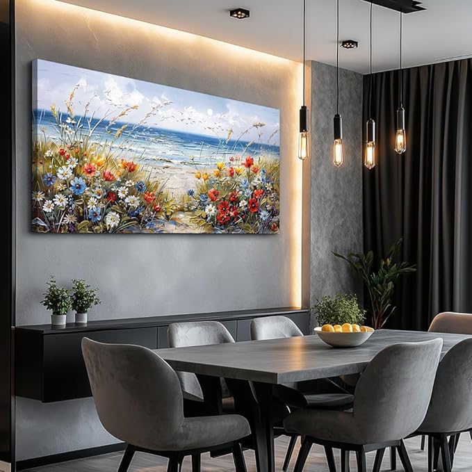 MHARTK66 Wall Decor For Living Room Large Canvas Wall Art Flowers Farmhouse Bedroom Wall Painting Office Blue Watercolor Print Nature Ocean Poster Modern Home Decorations Frames Artwork Easy Hanging