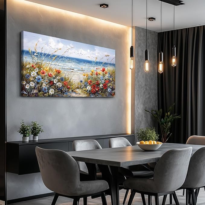 MHARTK66 Large Canvas Wall Art Flowers Farmhouse Bedroom Wall Painting Wall Decor For Living Room Office Blue Watercolor Print Nature Artwork For Walls Ocean Poster Modern Home Decorations 24x48