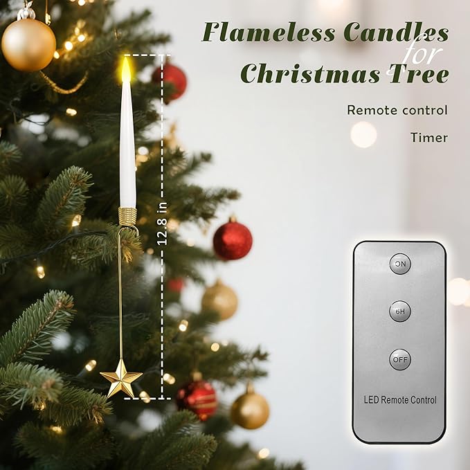 - ๐๐ฑ๐๐๐ ๐๐๐๐ ๐ถ๐๐ ๐ช๐๐๐๐ - ๐ฌ๐๐๐๐๐ ๐ช๐๐๐๐๐๐ ๐จ๐๐ ๐๐๐ ๐ช๐๐๐ ๐๐๐: This flameless tree candle comes with a convenient remote control, allowing you to effortlessly operate all the battery operated candles with just one click from a distance. No more hassle of manually adjusting each individual candle on your entire tree. In addition to the simple on/off function, it features both a timer and flickering function. You can switch between light or flickering mode, and easily set the lighting duration to your preference. This remote-controlled feature significantly reduces your decorating time, all while enhancing the festive atmosphere with minimal effort.