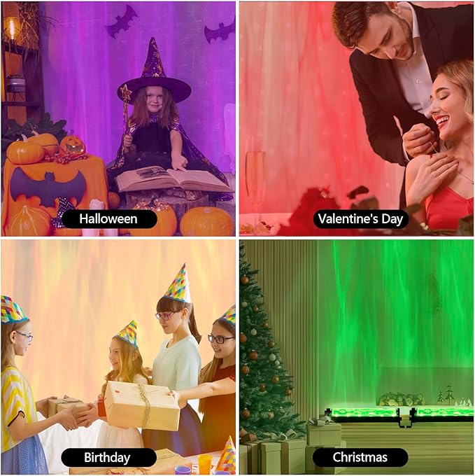 - 【Vibrant Colors & Effects】 Full spectrum color options with flash effects allow you to create a wide range of dynamic scenes, from flowing water and fireplaces to auroras. With 13 RGB colors , you can easily switch between various modes to match your mood or event.