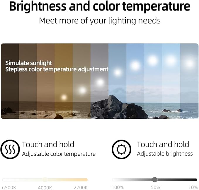- 【High-Density LED Strip】: Our light strip contains 240 LEDs/m and has a CRI (RA) of 93%, which accurately reproduces colors. It has a UGR<13 rating, meaning it’s gentle on the eyes and flicker-free. The lights last over 72000 hours. And you can select any color temperature from 2700k to 6500k and adjust the brightness from 10% to 100%.
