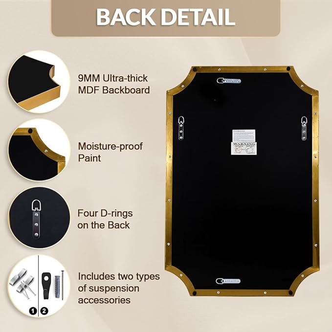 - Secure Packaging & Easy Mounting: 4 pre-installed D-rings, all needed hardware, and clear instructions come with this heavy scalloped bathroom vanity mirror for hassle-free setup. If Missing parts, just contact us. We recommend 2 people for installation.