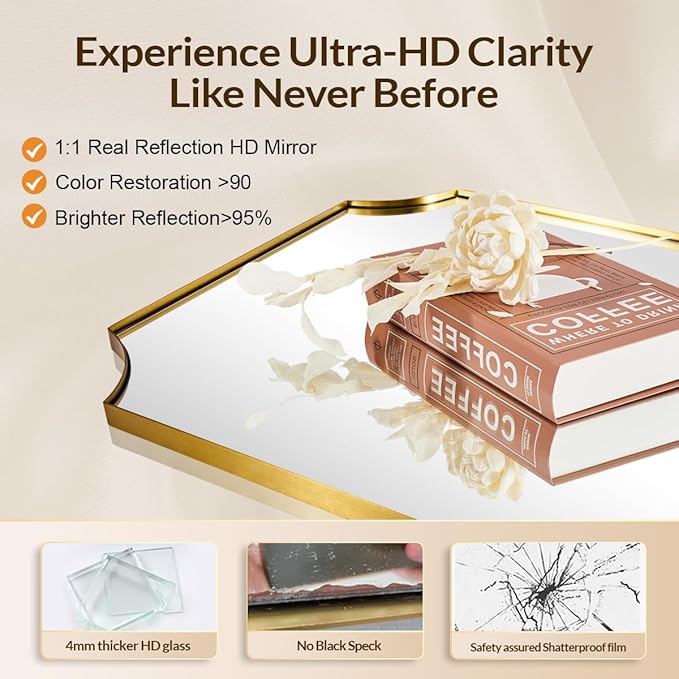 - MIRRORART’s Promise of Quality: Every antique gold wall mirror passes 12-point inspections (from glass clarity to frame welds) and meets strict standards, because safety and sustainability matter; it’s an investment in a piece that’ll stay stunning, functional, and yours for years to come