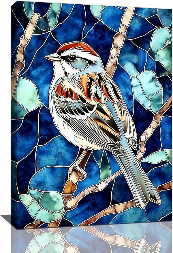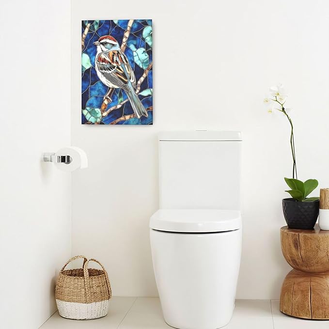 Bird Wall Art For Woman Cute Sparrow Nursery Canvas Wall Decor Vintage Aesthetic Pictures Paintings Prints Artwork Framed Decorations For Bathroom Bedroom Living Room Office Gifts 16" x 24"