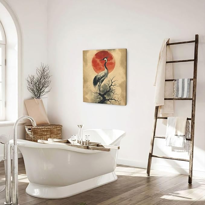 Japanese Crane Wall Art Oriental Asian Wall Decor Sandhill Crane Canvas Pictures Paintings Prints Japan Traditional Aesthetic Artwork Framed Chinese Decorations For Bedroom Living Room Office Gifts 20" x 24"