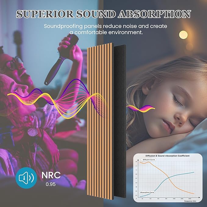 - High Quality and Safe Material: Our acoustic wood wall panels are made of high quality MDF and high density polyester. Without harmful gases, low TVOC levels, with premium sound absorption properties, protect your privacy and create a quieter environment.