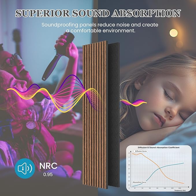 - High Quality and Safe Material: Our acoustic wood wall panels are made of high quality MDF and high density polyester. Without harmful gases, low TVOC levels, with premium sound absorption properties, protect your privacy and create a quieter environment.